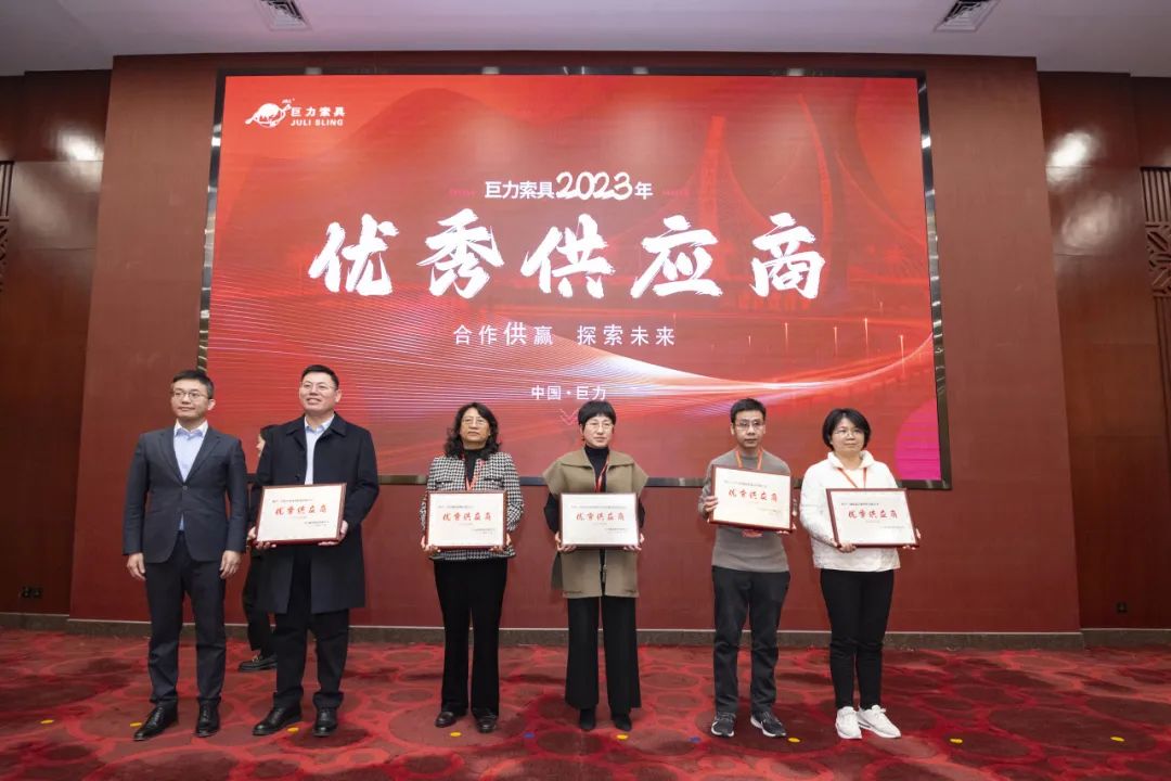 2023年,巨力索具和供應(yīng)商伙伴在高層互訪、產(chǎn)品開發(fā)、技術(shù)共享等領(lǐng)域取得了諸多成果。為感謝供應(yīng)商在品質(zhì)、創(chuàng)新、保供及合作等方面作出的突出貢獻(xiàn),本次大會向10家供應(yīng)商授予了“優(yōu)秀供應(yīng)商”獎項(xiàng)。