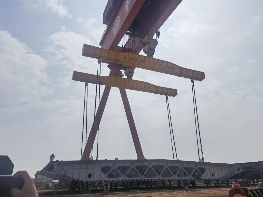 千噸級吊裝 成果再上新重量1700噸為全橋最重鋼箱梁