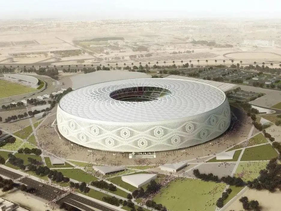 該球場是由卡塔爾建筑師Ibrahim M. Jaidah設計的,其設計靈感源自于阿拉伯男子佩戴的白色針織帽(Gahfiya),獨特的鏤空編織圖案極具阿拉伯特色,將阿拉伯當?shù)仫L情展現(xiàn)得淋漓盡致。