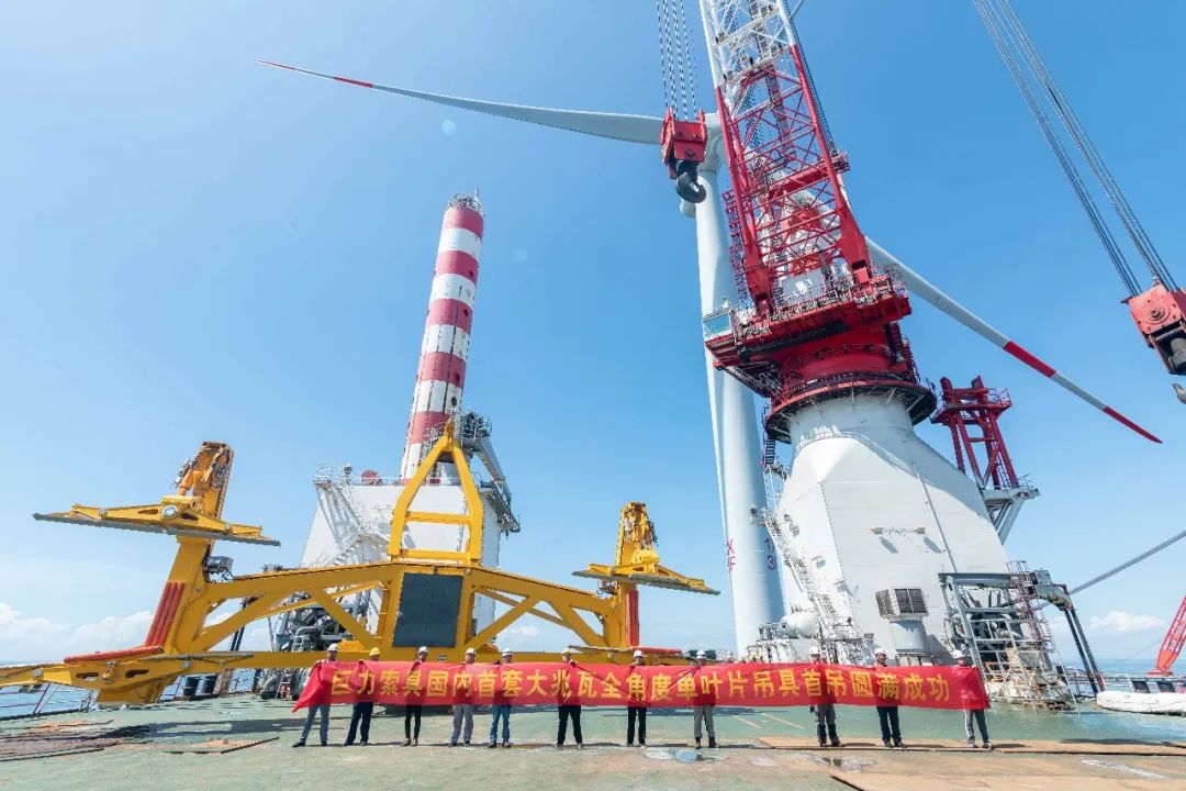 可實(shí)現(xiàn)多種型號(hào)葉片多姿態(tài)、多角度吊裝,能滿足風(fēng)機(jī)葉片三種角度的適配,使得風(fēng)機(jī)安裝更加便捷高效,大幅縮減了海上風(fēng)機(jī)吊裝安裝時(shí)間,尤其適用于海上大兆瓦葉片的吊裝,可滿足目前最大機(jī)組葉片的安全吊裝。