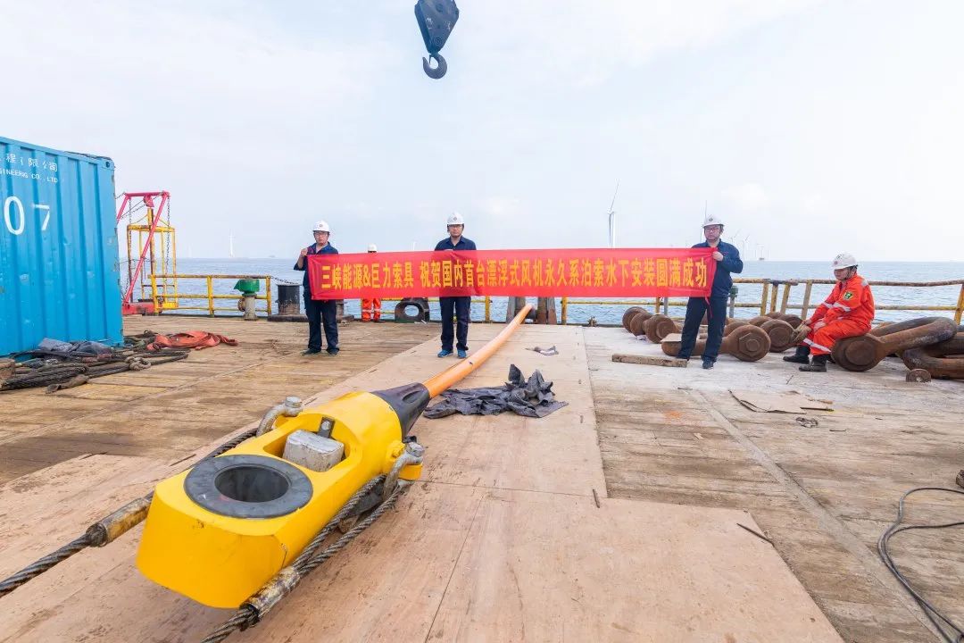 5月25日,由巨力索具自主研發(fā)生產(chǎn)的國內(nèi)首套海上漂浮式風(fēng)機(jī)永久系泊索順利通過驗(yàn)收。該套系泊索應(yīng)用在全球首臺(tái)抗臺(tái)風(fēng)型浮式海上風(fēng)機(jī),應(yīng)用此漂浮式風(fēng)機(jī)的三峽陽江沙扒項(xiàng)目將成為首個(gè)國家級(jí)漂浮式示范項(xiàng)目,也將為后續(xù)我國深遠(yuǎn)海海上風(fēng)電項(xiàng)目的開發(fā)以及海上風(fēng)電與海洋牧場(chǎng)、海水制氫等產(chǎn)業(yè)的融合發(fā)展奠定堅(jiān)實(shí)基礎(chǔ)。