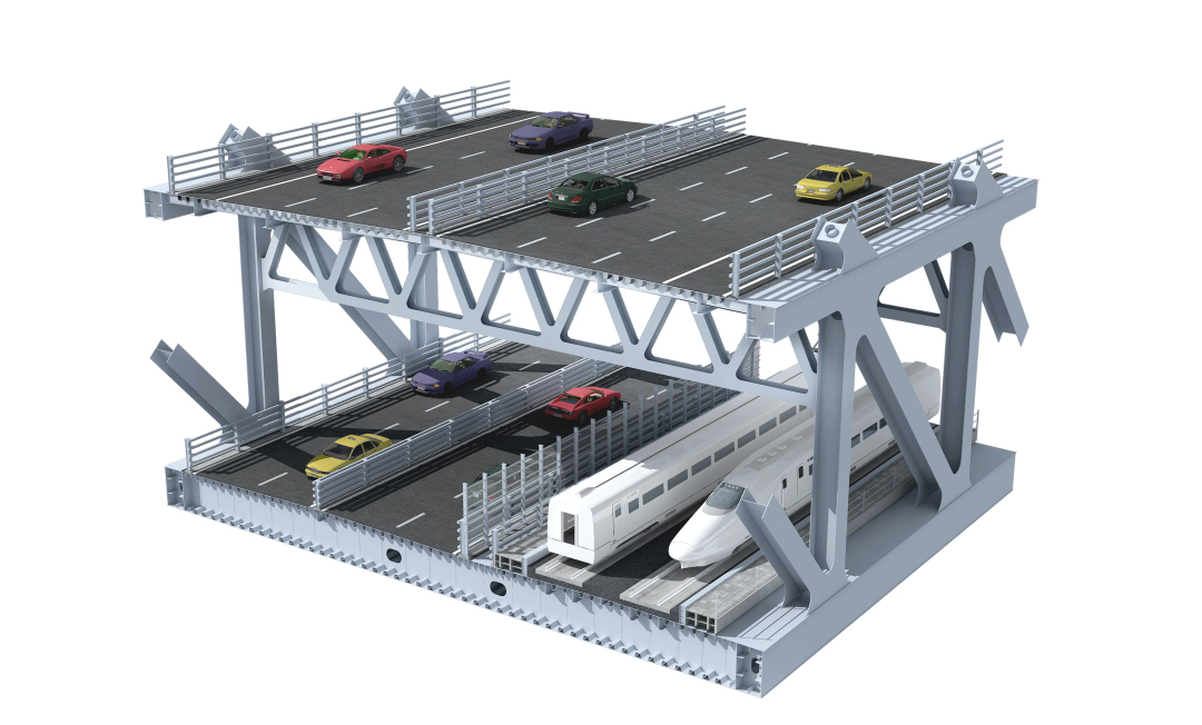 常泰長(zhǎng)江大橋主航道橋鋼梁采用雙主桁“N”形鋼桁梁,桁高15.5米,桁中心間距35米,主橋鋼梁在工廠內(nèi)整節(jié)段制造、運(yùn)輸,全橋共91個(gè)大節(jié)段,節(jié)段長(zhǎng)度14米~28米,節(jié)段重量900噸~1856噸。